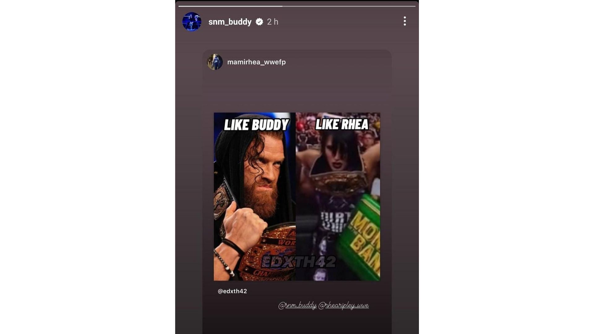 Although the specific action being imitated was left unspecified. This is not the first time that Buddy Matthews and Rhea Ripley have poked fun at each other on social media. In the past, he has made jokes about her on-screen relationship with Dominik Mysterio.