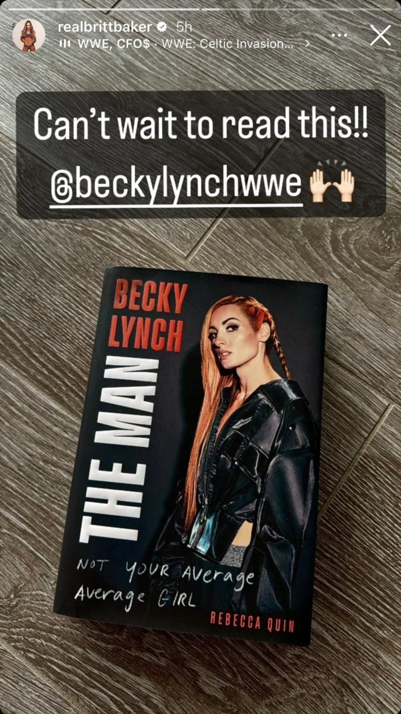 On her Instagram story, Britt Baker posted a picture of Becky Lynch's autobiography, The Man: Not Your Average Average Girl, and expressed how excited she was to get a chance to read it. She even used The Man's theme song as the background music for her post.