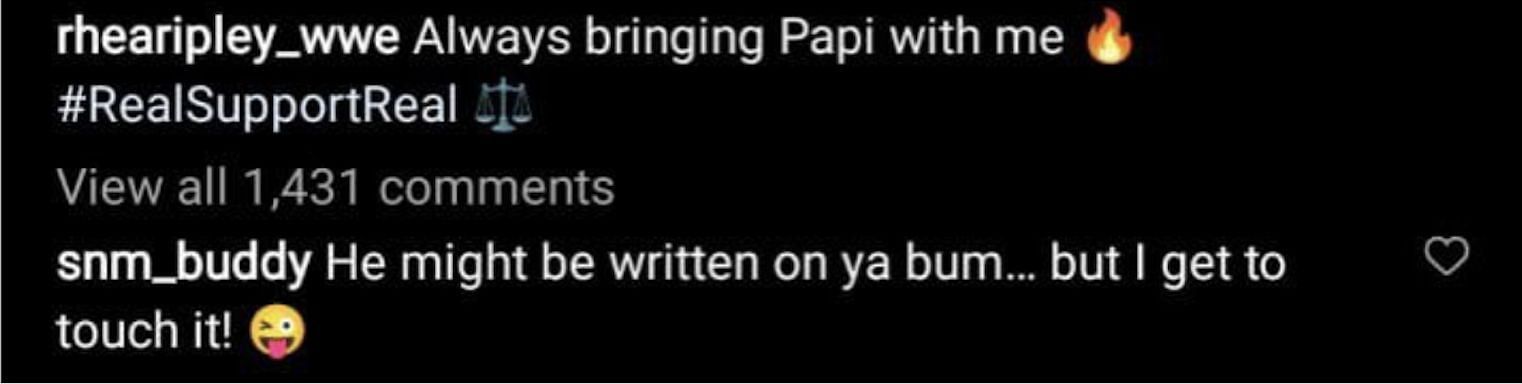 "Always bringing Papi with me 🔥 #RealSupportReal ⚖️" wrote Rhea Ripley in the caption of the Instagram post.