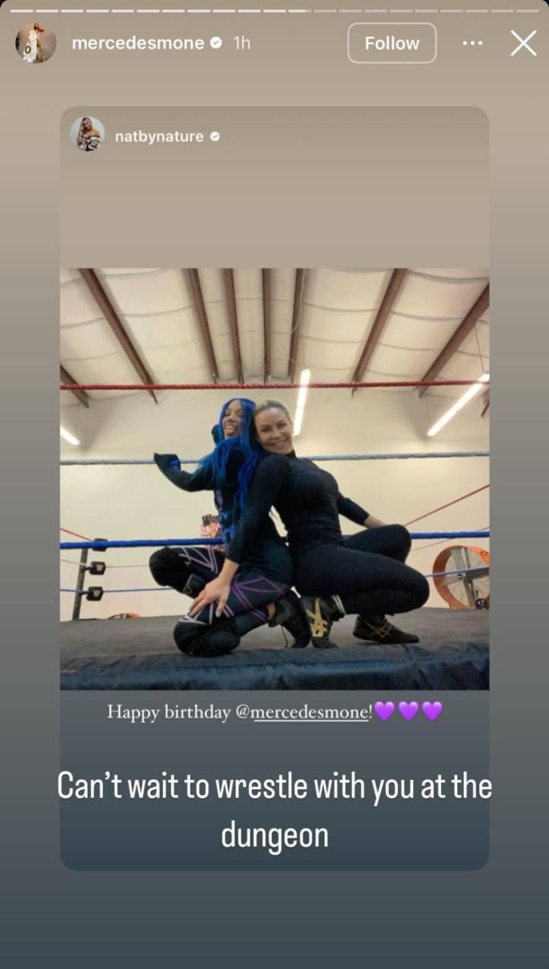 "Happy birthday @mercedesmone Can't wait to wrestle with you at the dungeon".