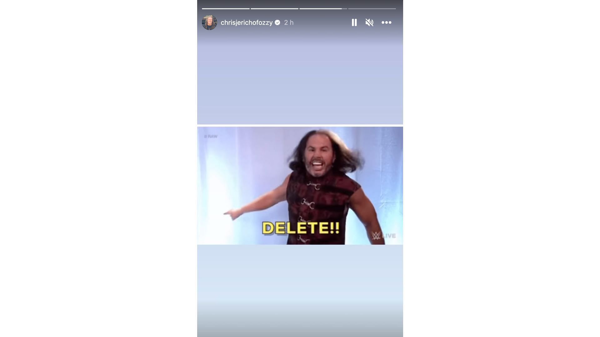 Shortly after, Jericho added a GIF of Broken Matt Hardy acting out his popular "delete" chant, seemingly in response to Punk removing the now-controversial deleted Instagram Story.