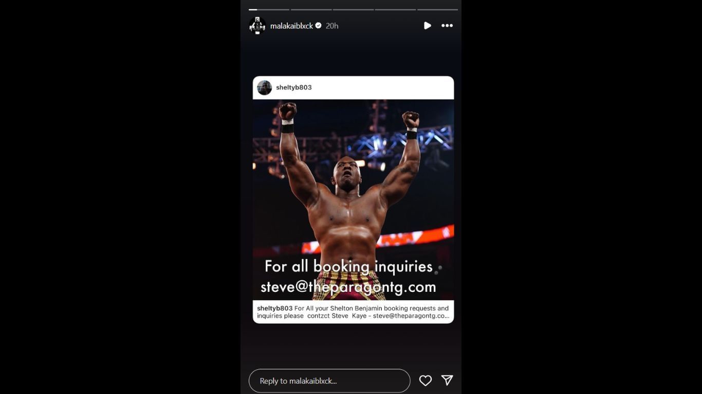 In a recent Instagram story, Malakai Black made a heartwarming gesture by promoting Shelton Benjamin's post about getting booked on the Independent Circuit.