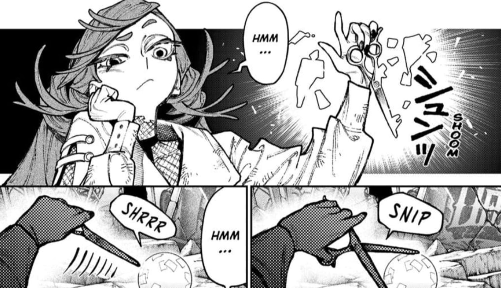 Gachiakuta chapter 146, titled Have a Ball, begins with Riyo wondering how she can cut through Felix's barrier, which is not only spherical but also has a hard texture. As a result, she cannot get a proper grip on her scissors. Riyo then thinks she could cut through the barrier if Felix and others come charging toward her.