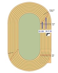 Now here are the start points of the different lanes, eg lane 2 is 7 meters ahead of the 100m line.Lane 2 = 407 MetersLane 3 = 413MLane 4 = 420MLane 5 = 427MLane 6 = 434MLane 7 = 440MLane 8 = 447Mhttp://www.ehow.com/how_6687740_measure-distance-pedometer.html