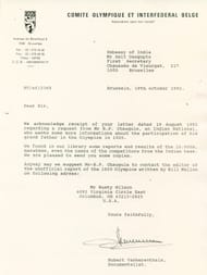 The letter received by Bipinchandra Chaugule, mentioning the participation of PD Chaugule at the 1920 Summer Olympics