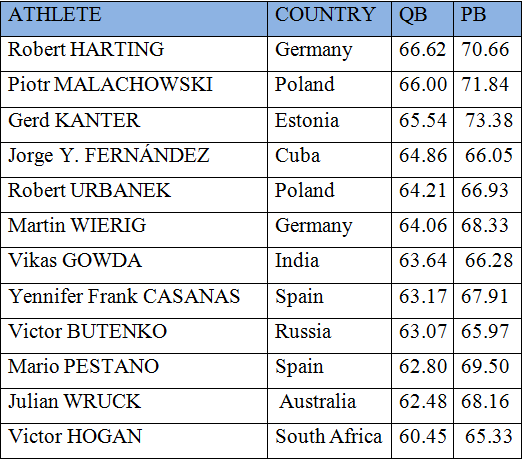 Piotr Malachowski, a silver medallist at the 2008 summer Olympics, has been in great form this year, throwing a season best of 71.84 metres, and will surely be one of the names to look out for in the 12-man finals.