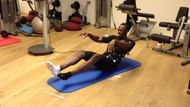 The principal exercises he does are leg raises, side sweeps, reverse crunches and side plank clams, all focused on strengthening his back, improving mobility and keeping the torso lean.