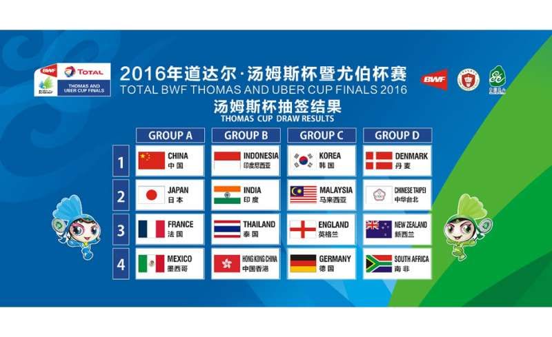 Group A features defending champions Japan and top seeds China besides lesser ranked France and Mexico, making it the most exciting bunch to watch out for. World No. 1 Chen Long has certainly not forgotten their 2014 semi-final ouster by the Japanese en route to their maiden Thomas Cup title. As favourites, he and his team will go in all guns blazing to reclaim their throne in front of the home crowd this time.