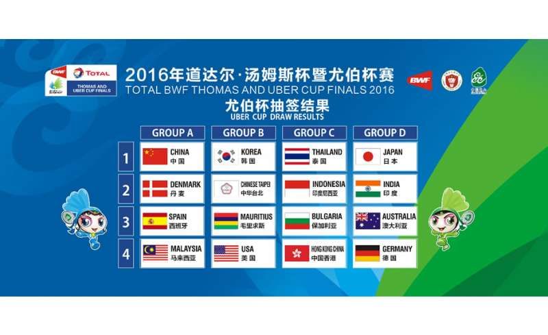 Although reigning World Champion Carolina Marin is a part of the Spanish contingent who face off against holders China, chances of an upset look bleak with Denmark and Malaysia being the other contenders in Group A.