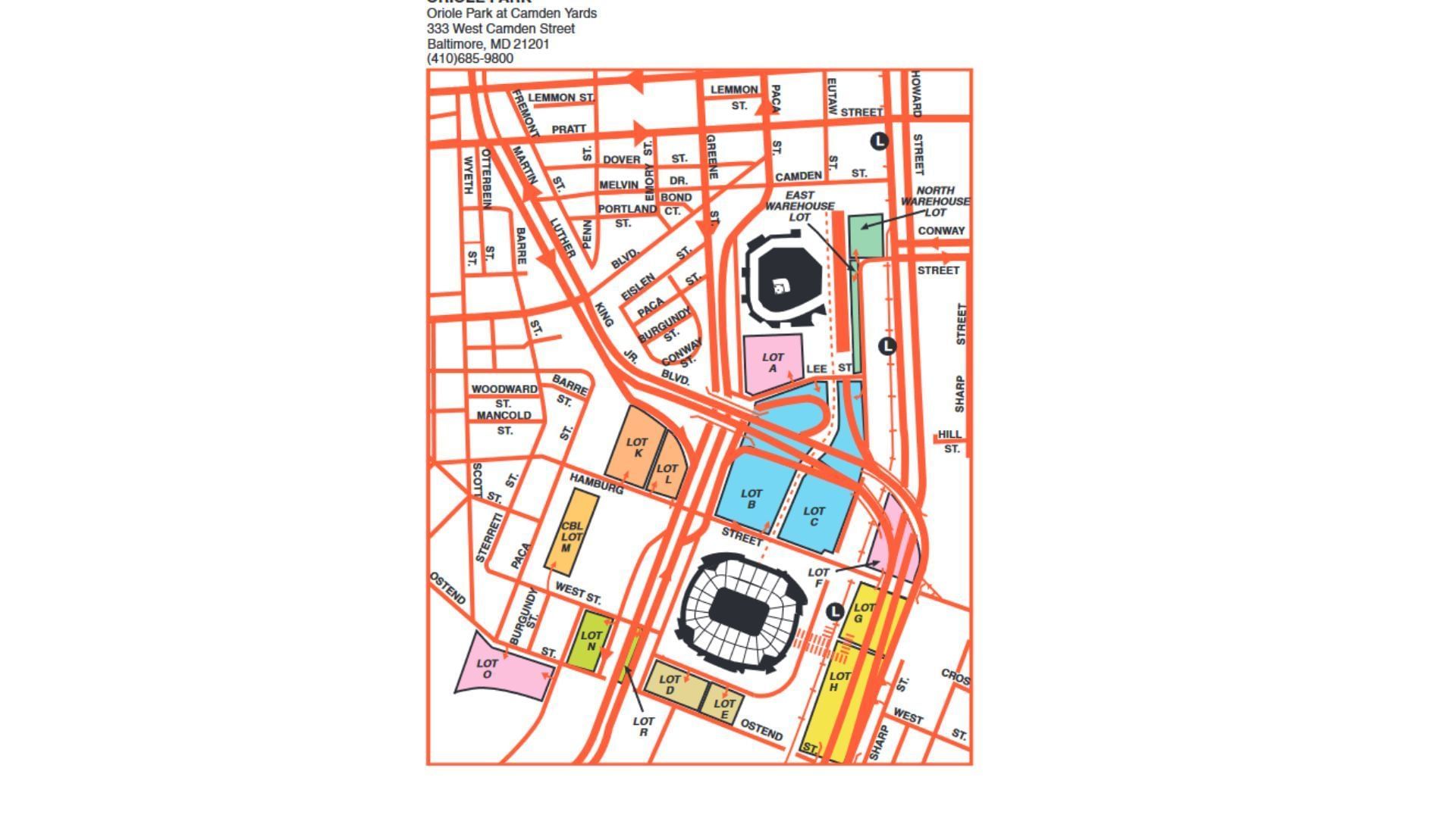 The following is the parking map of Oriole Park at Camden Yards Stadium as per the MLB official site.