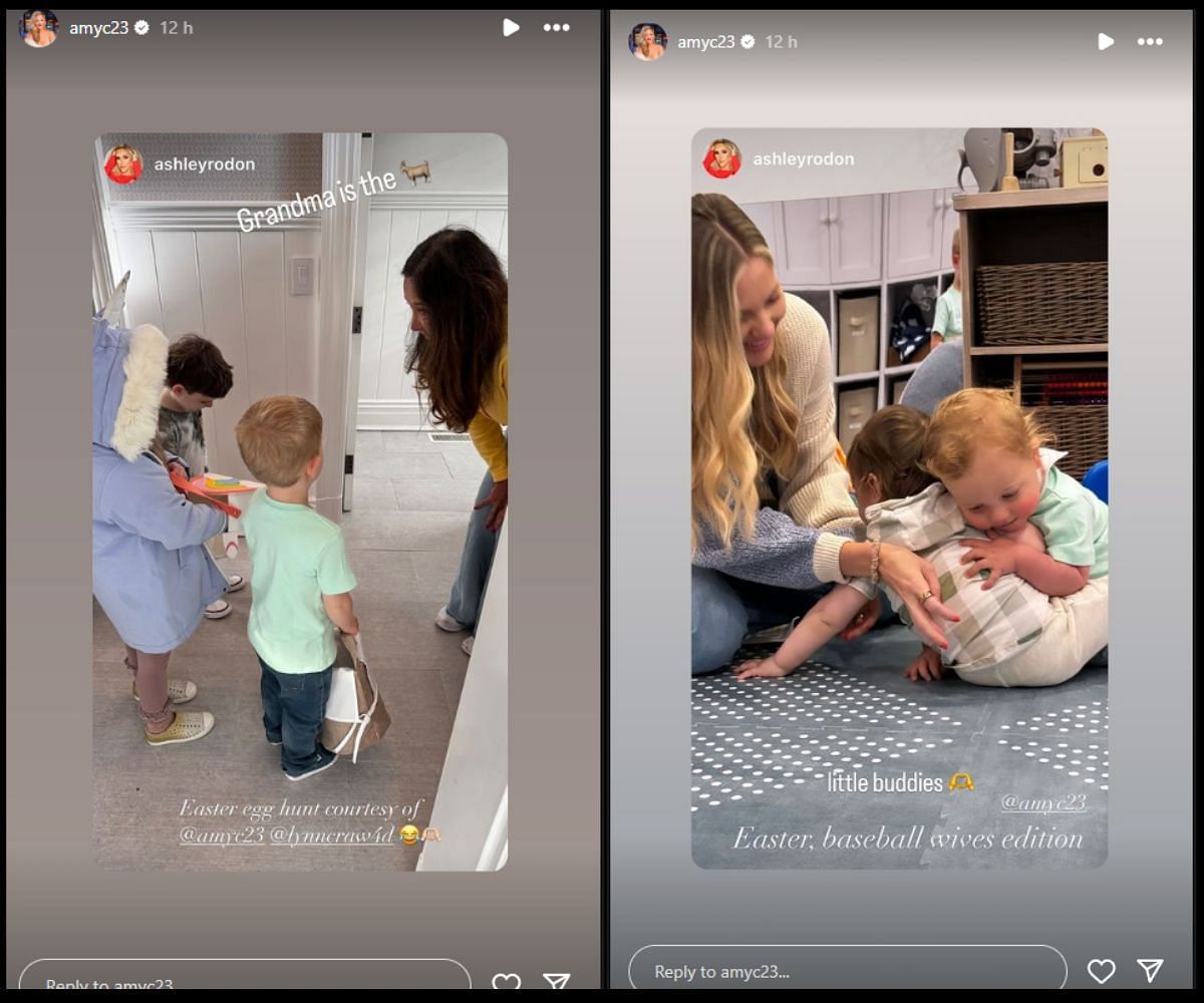 With Easter upon us, Cole's two young sons, Caden and Everett, joined Carlos Rodon's kids, Willow, Bo and Silo, for an egg hunt. Cole and Rodon's wives, Amy and Ashley, took to Instagram stories to share snaps of the fun.