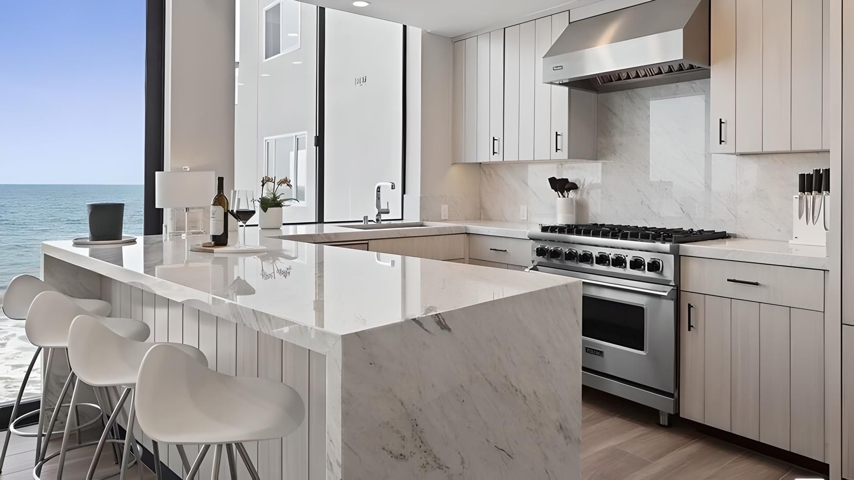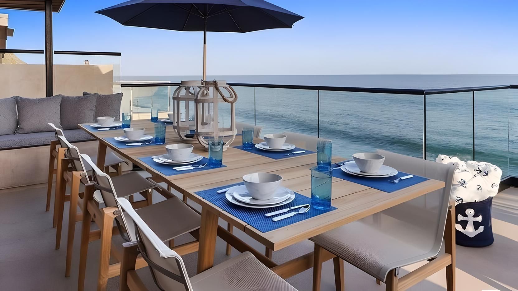The property is stylish, modern and homely, with three beds and four bathrooms. Let's take a look at this 2,526-square-foot property, which features sea views, a rooftop deck, a spa, and a terrace: