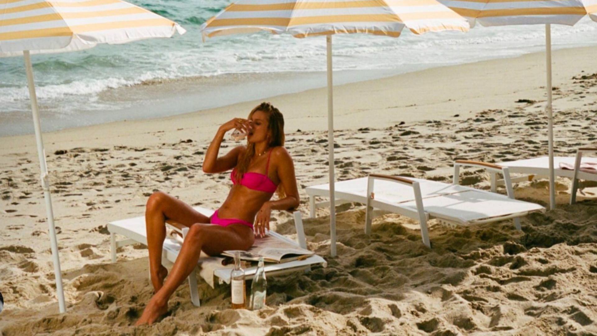 In one photo, she was spotted wearing a pink bikini, sitting on a sunbed while sipping on a drink. In another picture, she struck a pose while laying on a sunbed.