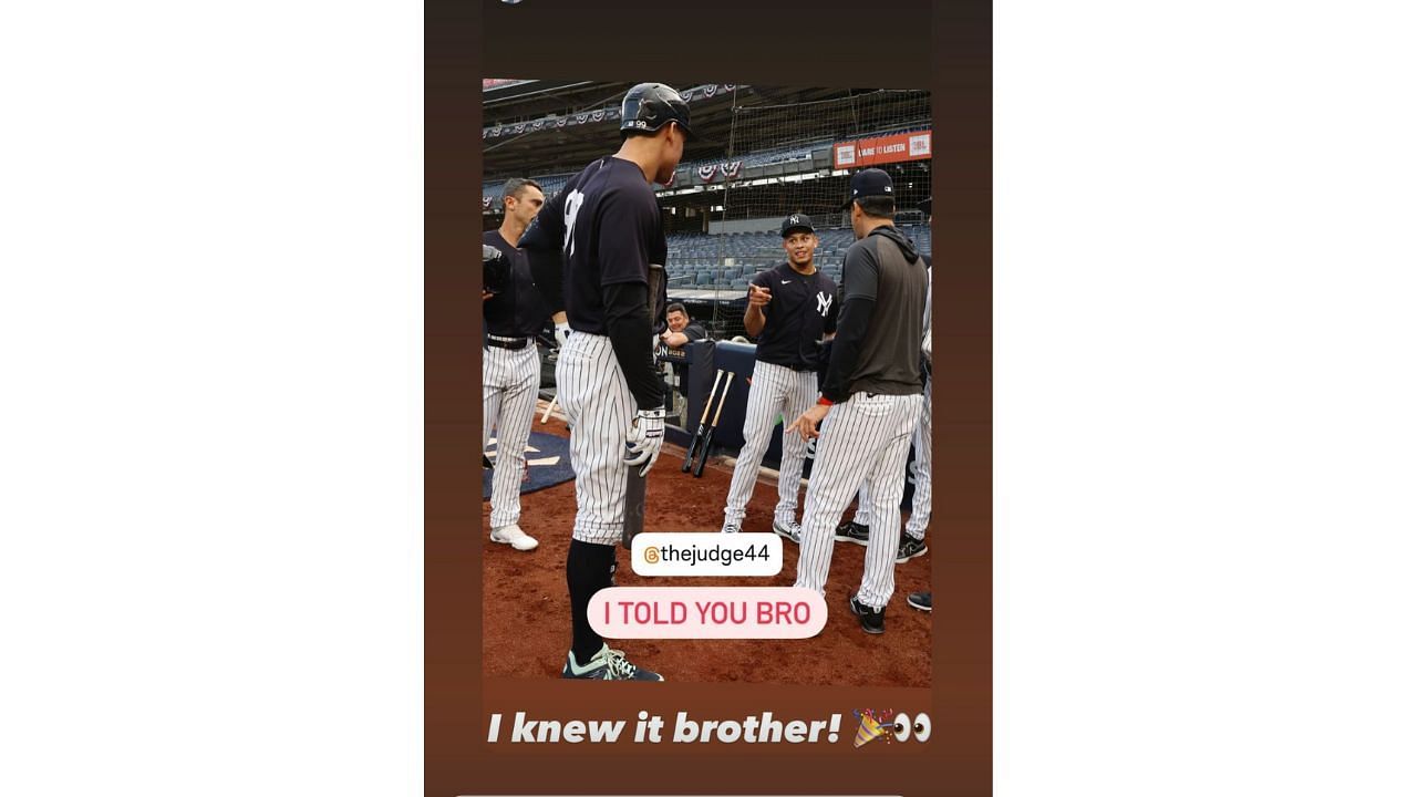 Loaisiga posted a picture of himself and Judge with the words, "I told you bro" posted. He seems to imply that he had said at some point to Judge that he would be back with the Yanks. Judge replied with: