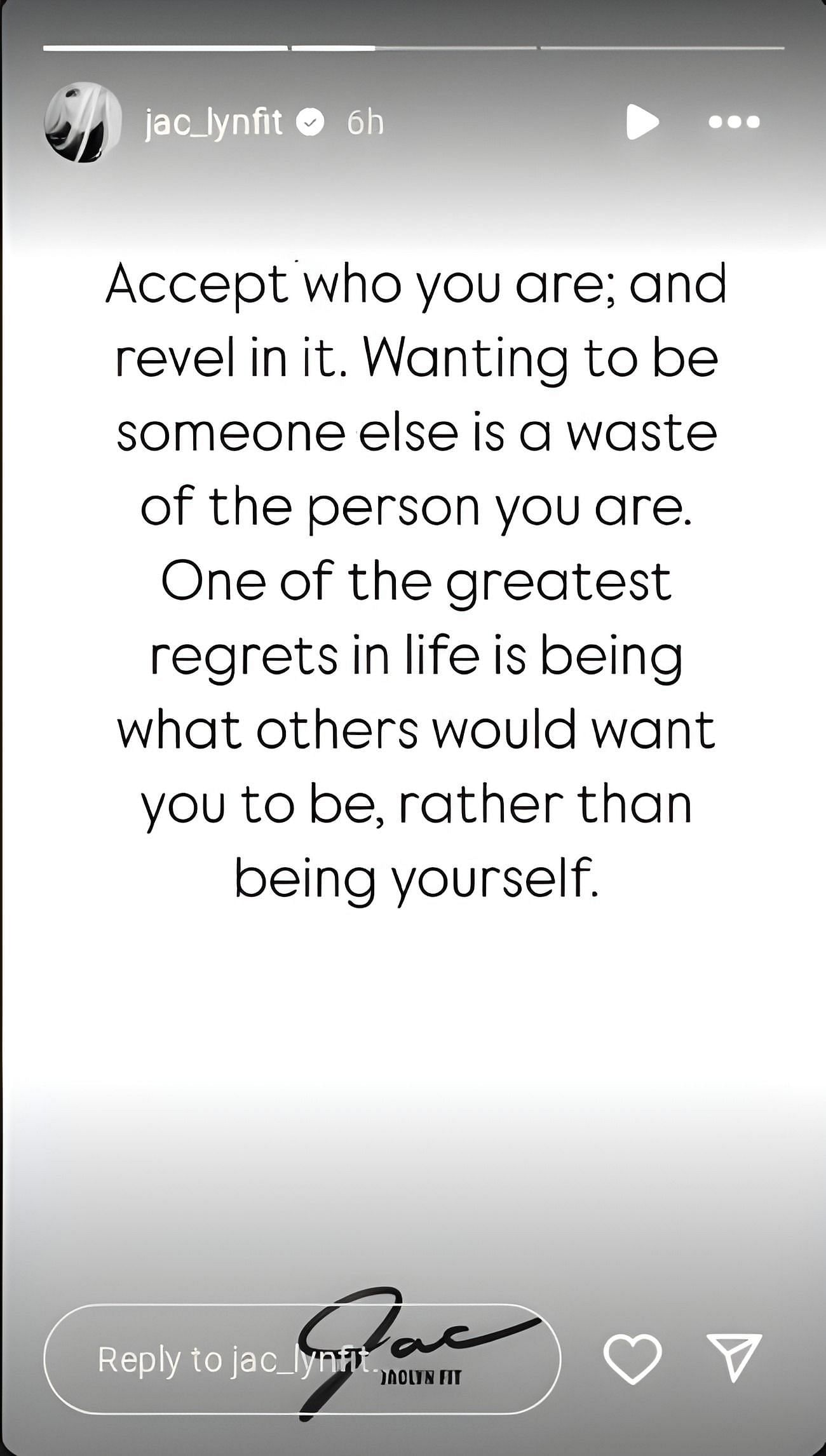 Cordeiro is a personal trainer and fitness instructor. She regularly shares motivation messages to her followers on Instagram and she dropped one of these messages on her Instagram story on Monday.