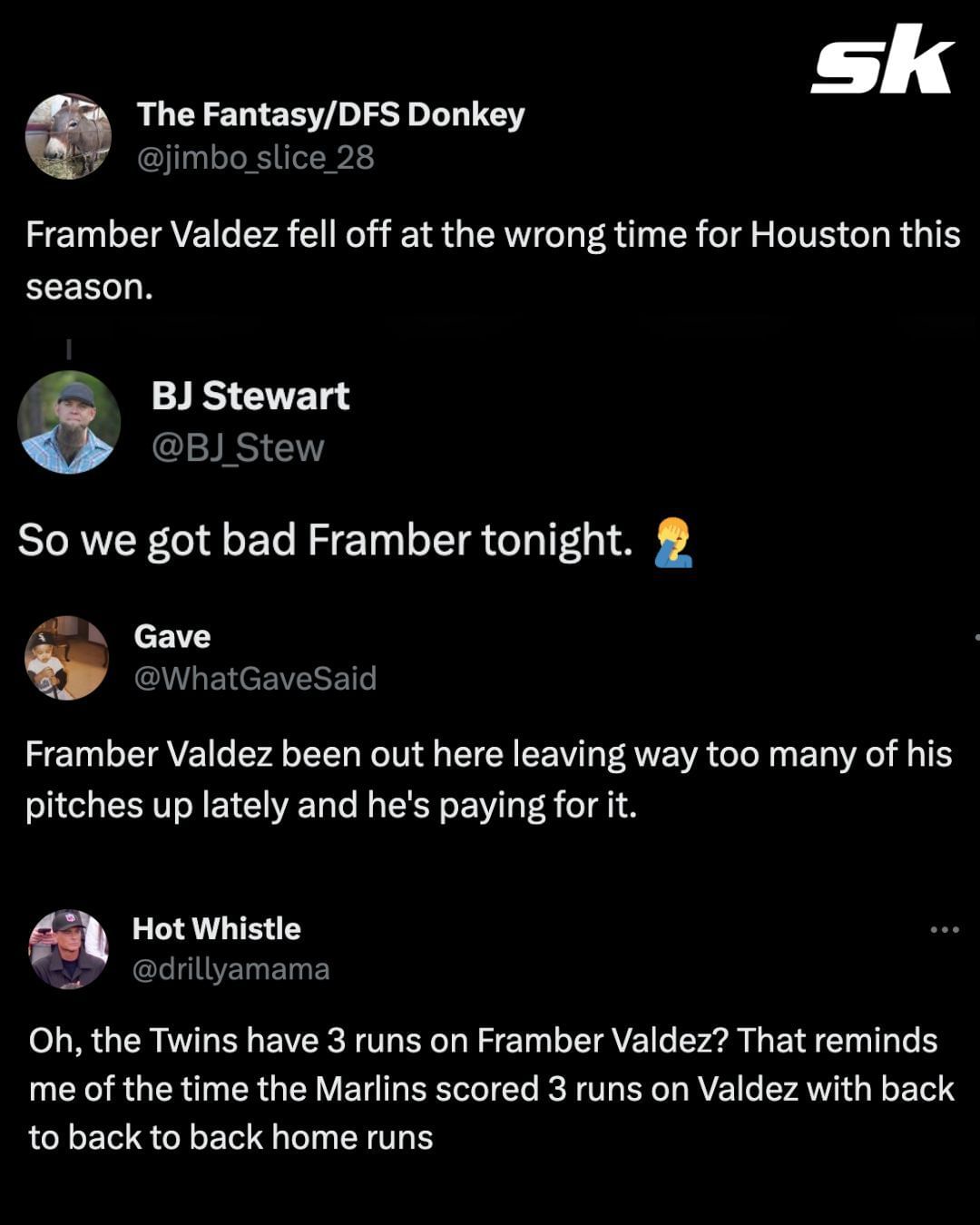 "Framber Valdez fell off at the wrong time for Houston this season." - Posted another fan.