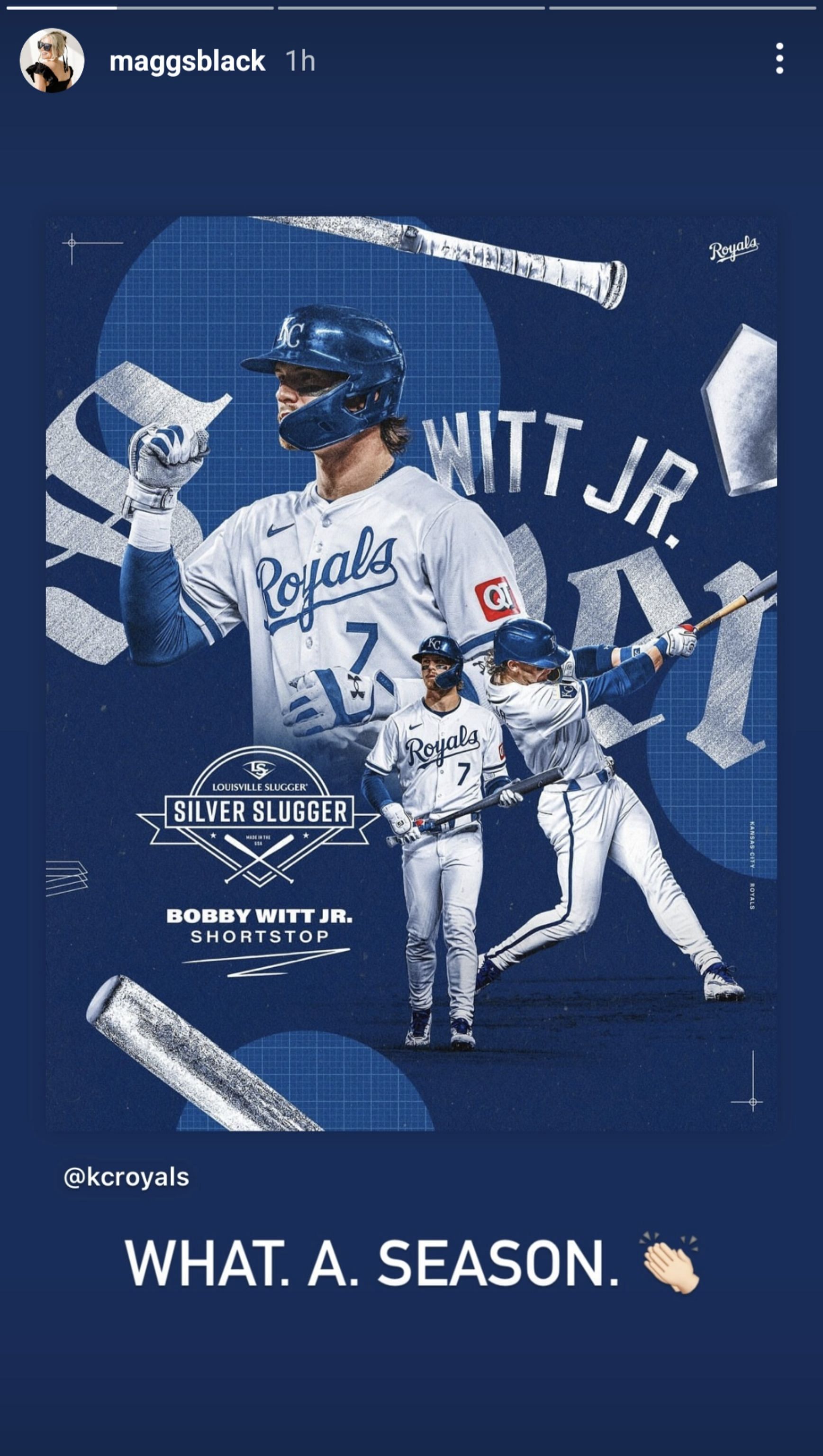 Bobby Witt won the Silver Slugger award, beating Baltimore Orioles' Gunnar Henderson and Texas’ Corey Seager, the two other finalists at shortstop. Maggie reacted to the news on Instagram, captioning her story: