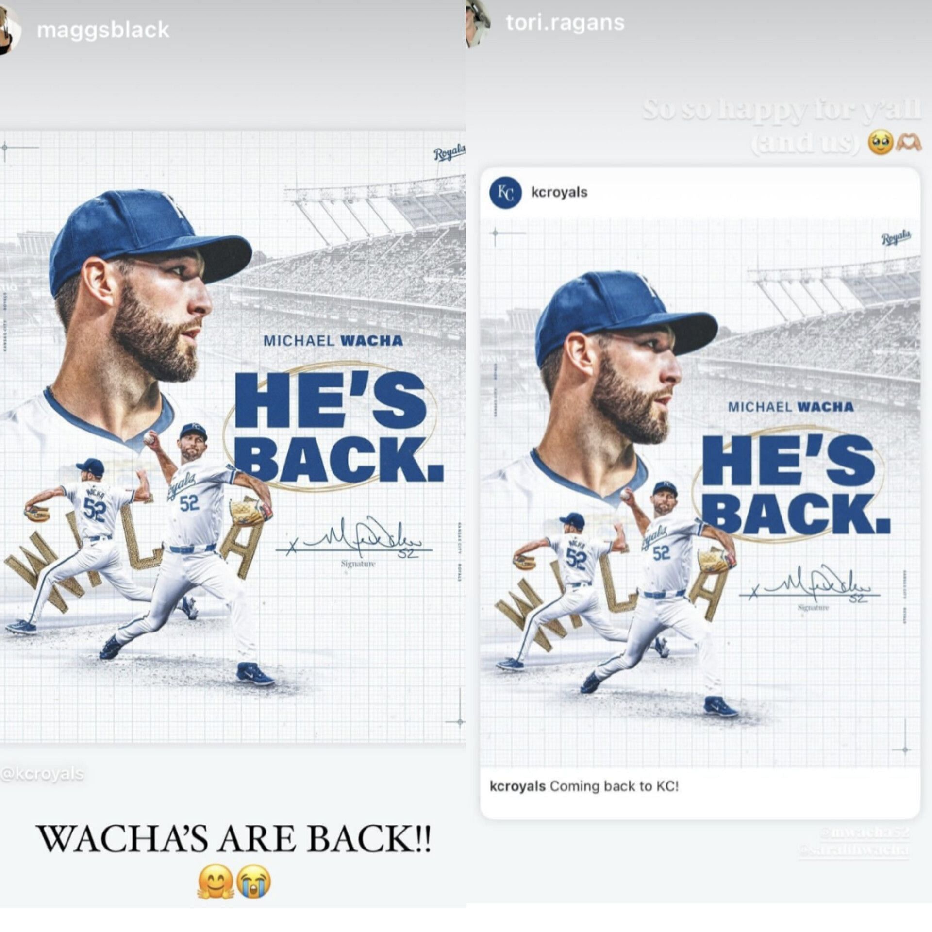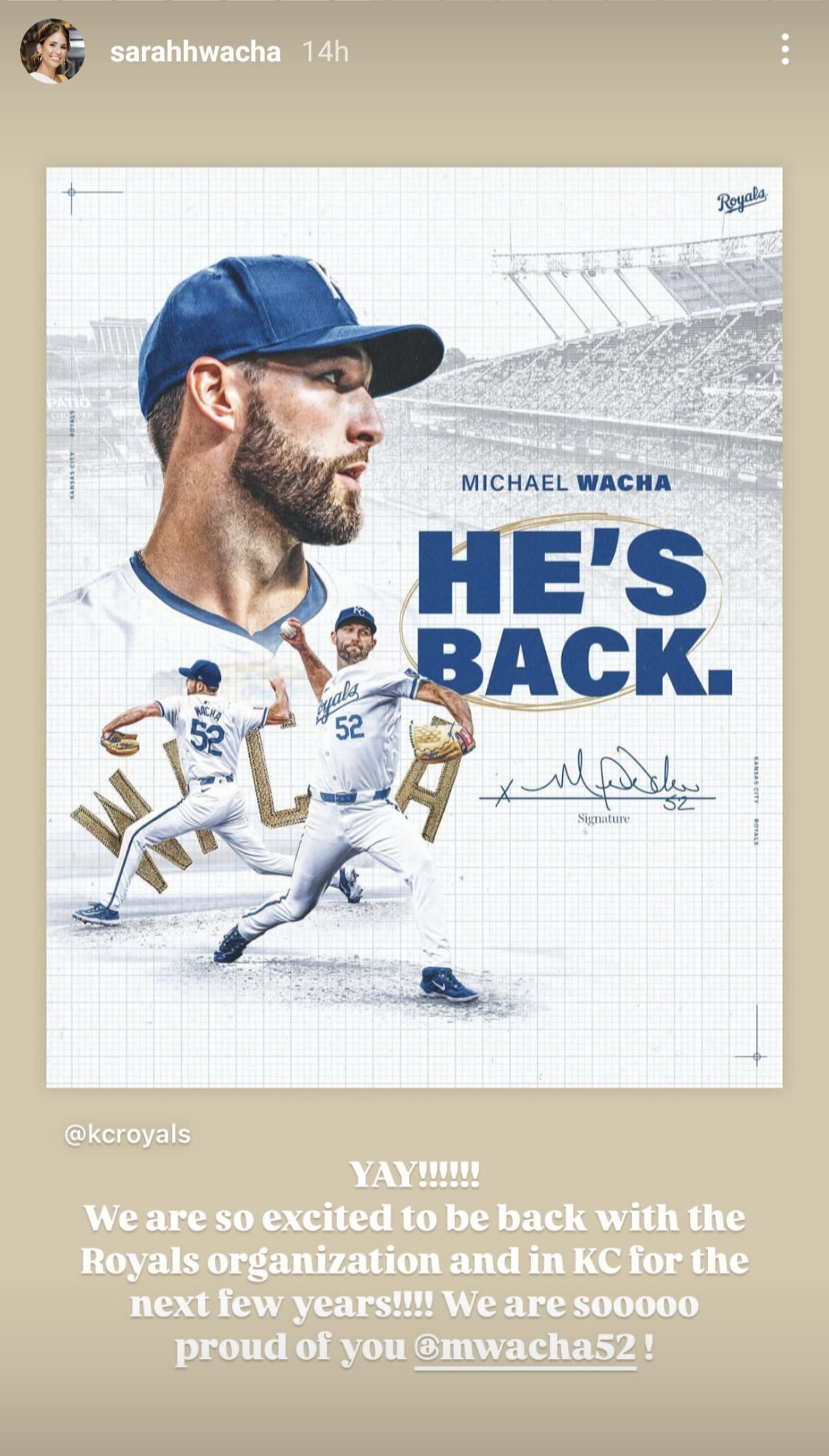 "YAY!! We are so excited to be back with the Royals organization and in the KC for the next few years!!! We are so proud of you @mwacha52!" Sarah wrote in her Instagram story.