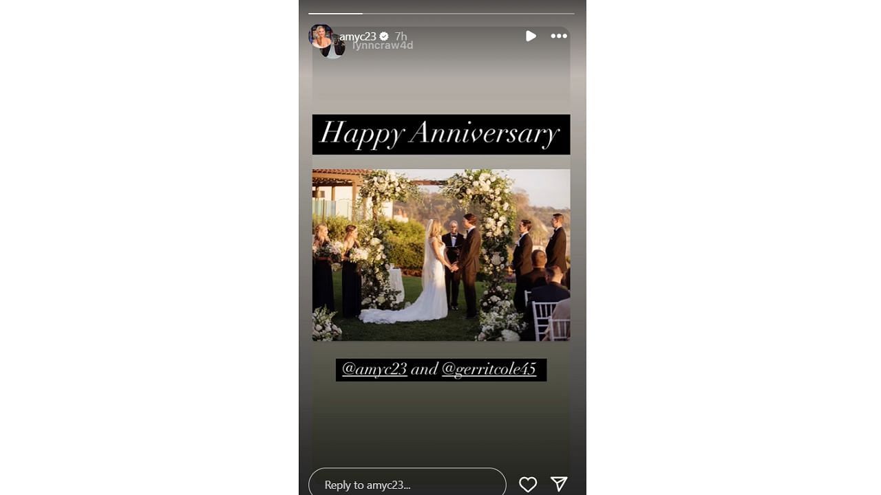 On Tuesday, Yankees ace Gerrit Cole and his wife Amy celebrated their eighth marriage anniversary. On the occasion, she received a warm wish from her mother Lynn on social media.