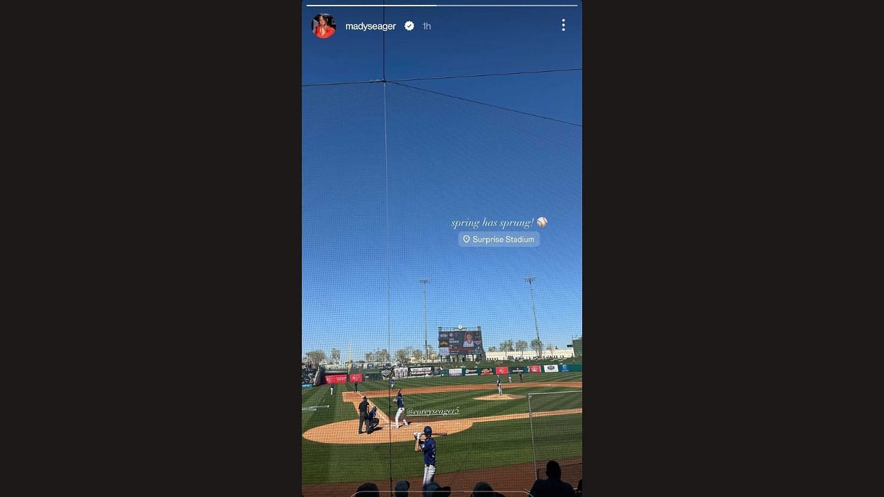 On Tuesday, Madisyn attended the Texas Rangers spring training game at Surprise Stadium to cheer on her husband. She shared a glimpse of the game on her Instagram account, captioning it: