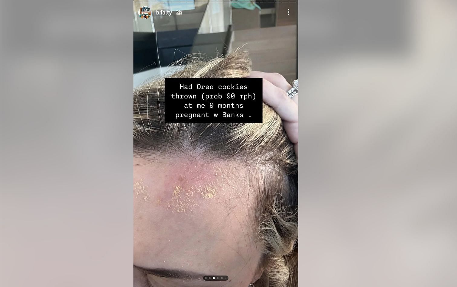 "Had Oreo cookies thrown (prob 90 MPH) at me 9 months pregnant with Banks."