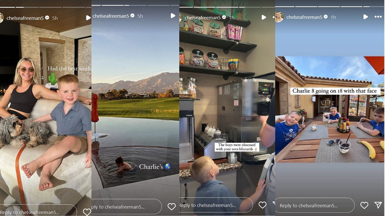 The Freeman family chose to spend their weekend in a fun retreat with their three sons - Charlie, Brandon and Max. On Sunday, Chelsea shared a series of photos from their getaway.