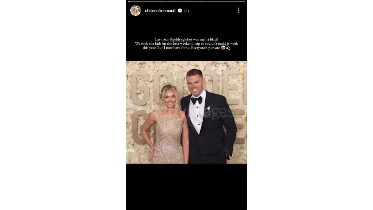 Freddie Freeman's wife Chelsea gets "FOMO" upon missing Golden Globes Award