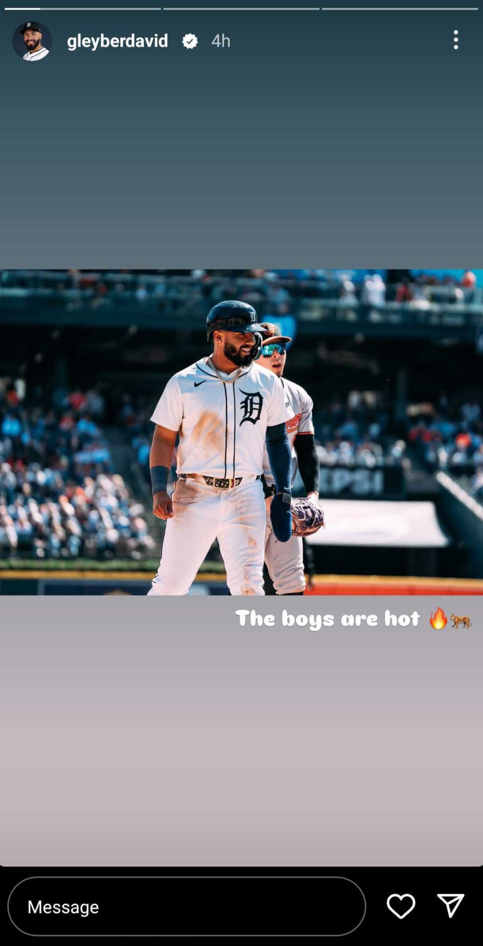 The series finale on Sunday ended the Tigers' 10-game homestand with an 8-2 record. Following the rout of their AL opponents, All-Star second baseman Gleyber Torres dropped a four-word message with a picture of himself from Sunday's game, writing: