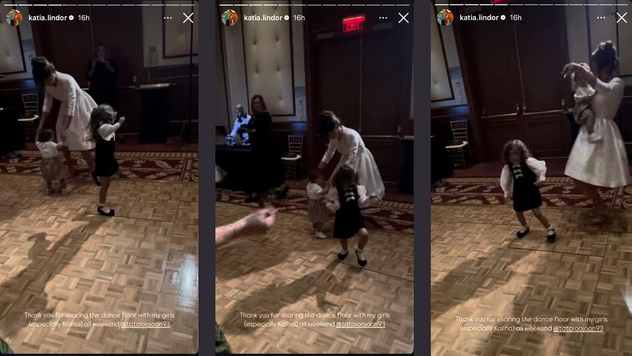 On Sunday, Francisco Lindor's wife Katia posted an adorable video to her Instagram story, showing her daughters Kalina Zoe and Amapola dancing with Sean Manaea's bride-to-be, Talat Mirmalek, while fellow Mets infielder Jose Iglesias' song "OMG" played at the party.