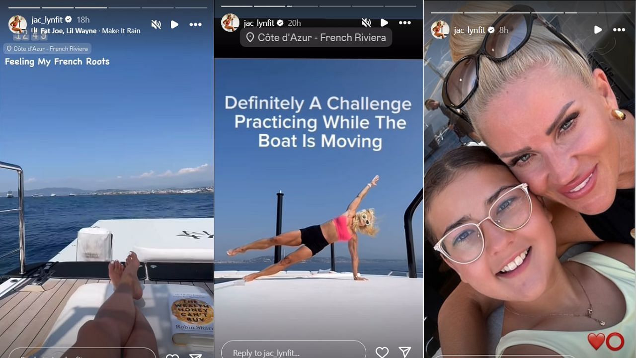 On Friday, Cordeiro shared a few snaps of her cruising through the scenic French Riviera. While on the cruiser, Cordeiro didn't forget to do her workout, despite it being tough considering the continuous motion of the boat due to waves.