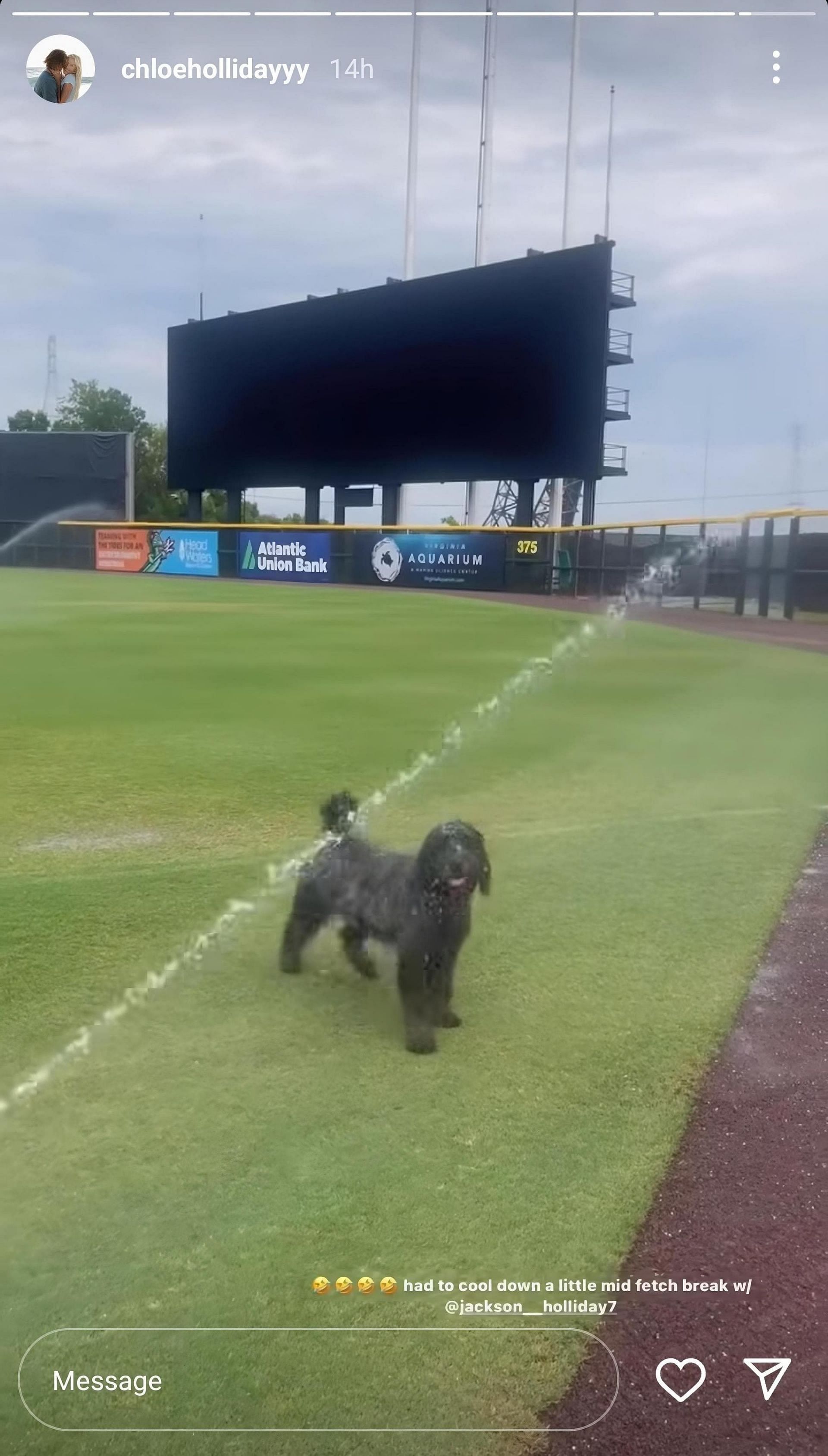 “[laughing emoji] had to cool down a little mid fetch break w/ @jackson_holliday7”
