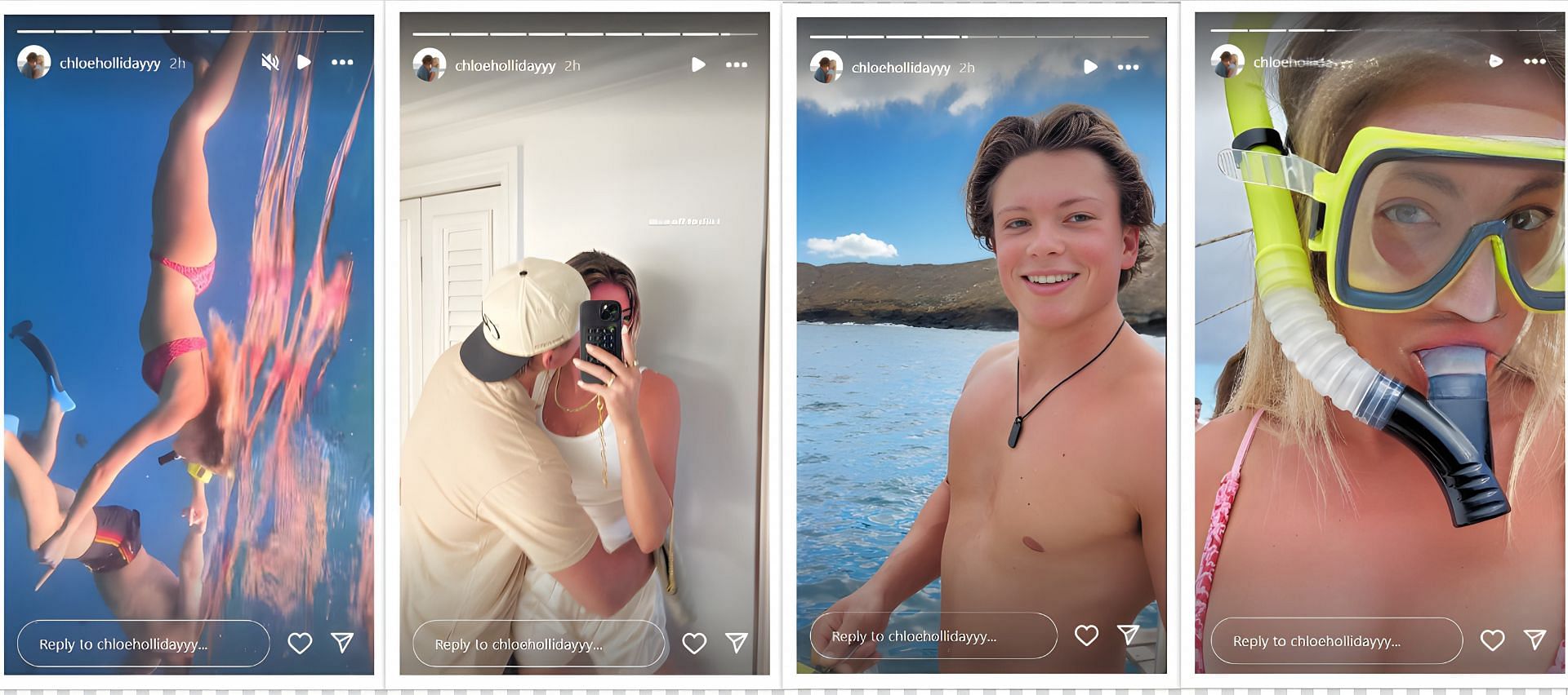 The Instagram story from Chloe Holliday shows the young couple doing a number of different water activities, including some scuba diving. The love between Jackson Holliday and his wife is also evident as Chloe shares a selfie of herself being kissed by the young star.
