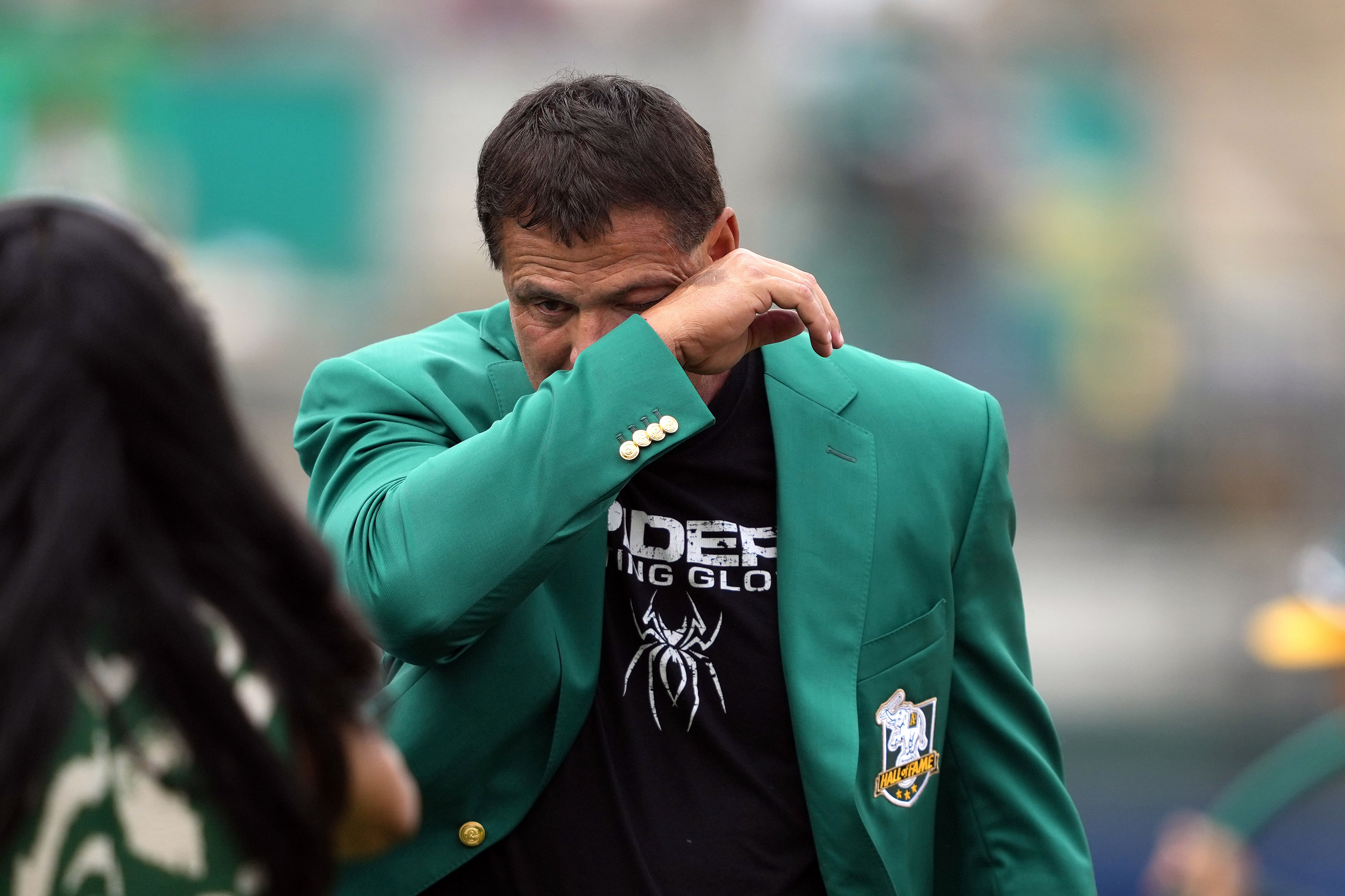 Jose Canseco teary-eyed while addressing season-high attendance in Oakland
