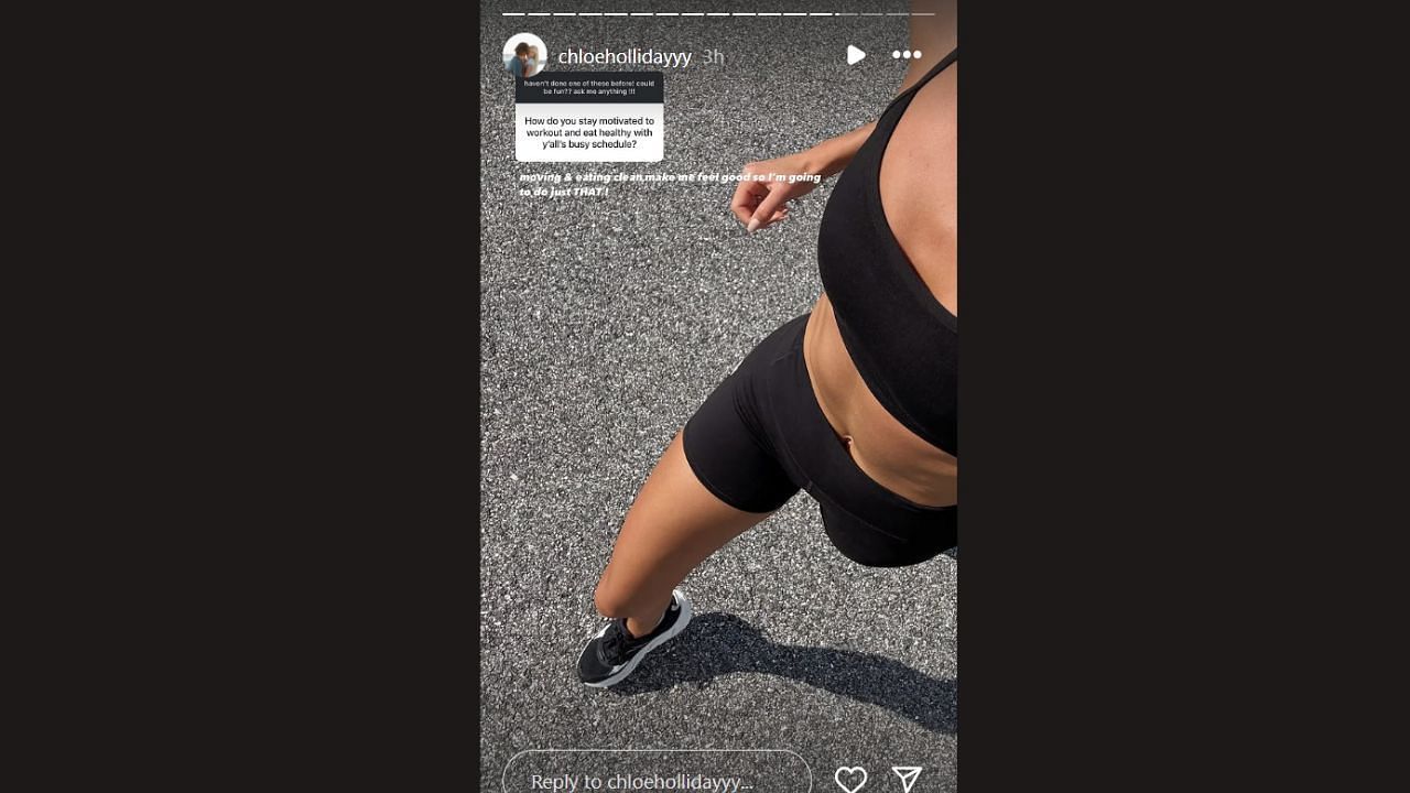 On Monday, Chloe held a Q&A session with her followers on Instagram. She responded to several questions about her life, including one from a fan who asked how she stays motivated to maintain a healthy diet and workout routine despite her busy schedule.