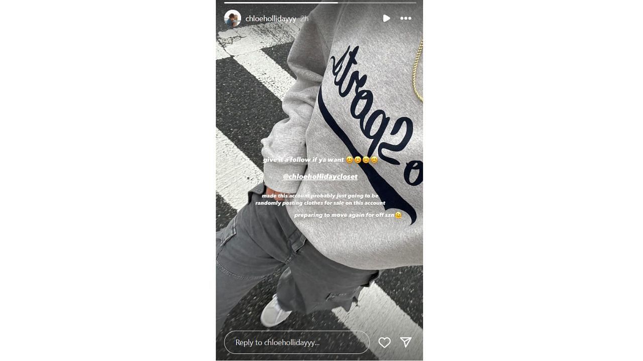 On Tuesday, Chloe posted a story suggesting they would be moving again this offseason. She said she had also prepared an account where she would put her wardrobe for sale. Those interested can follow the account @chloehollidaycloset.