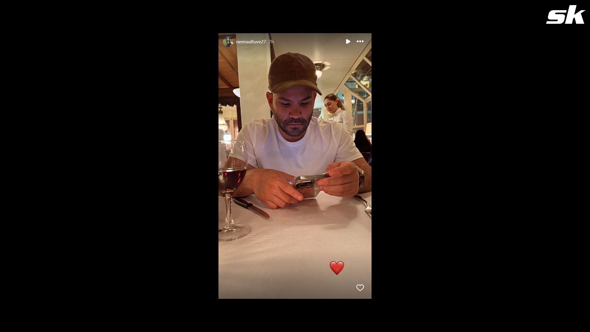 Jose Altuve and his wife Nina enjoyed a romantic wine date night while on their European trip. In the image shared on social media, the Astros star can be seen casually scrolling on his phone while a glass filled with red wine is kept on the table adjacent to him.