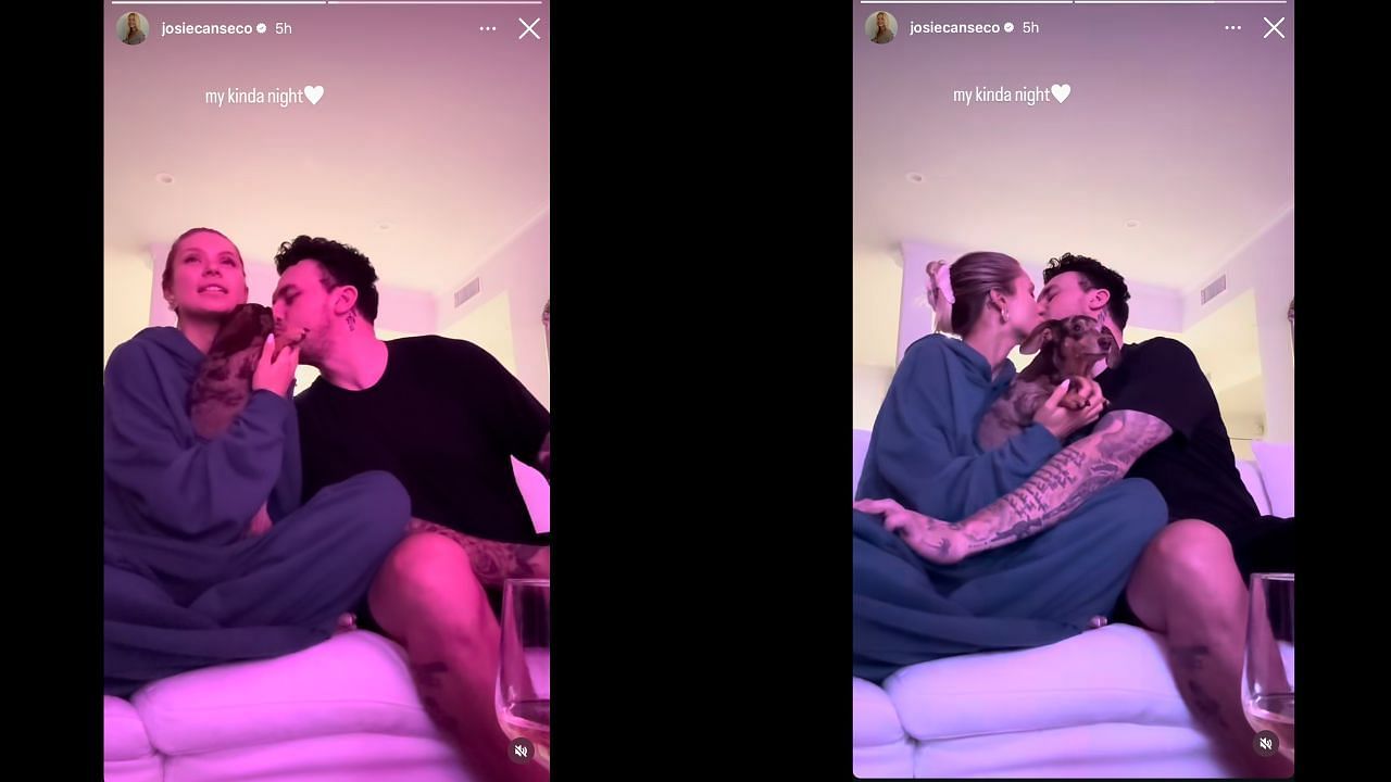 Legendary MLB outfielder Jose Canseco's daughter Josie Canseco posted a video on Instagram on Tuesday as she ushered in the new year with a cozy stay-at-home celebration in the company of her boyfriend, Johnny Manziel, and dog, Ronald.