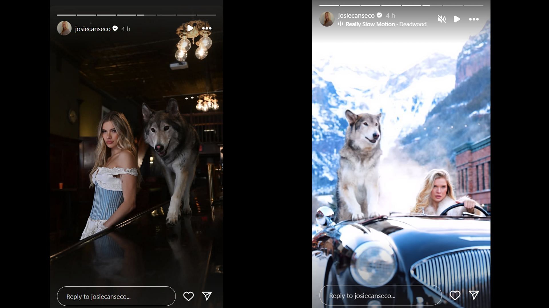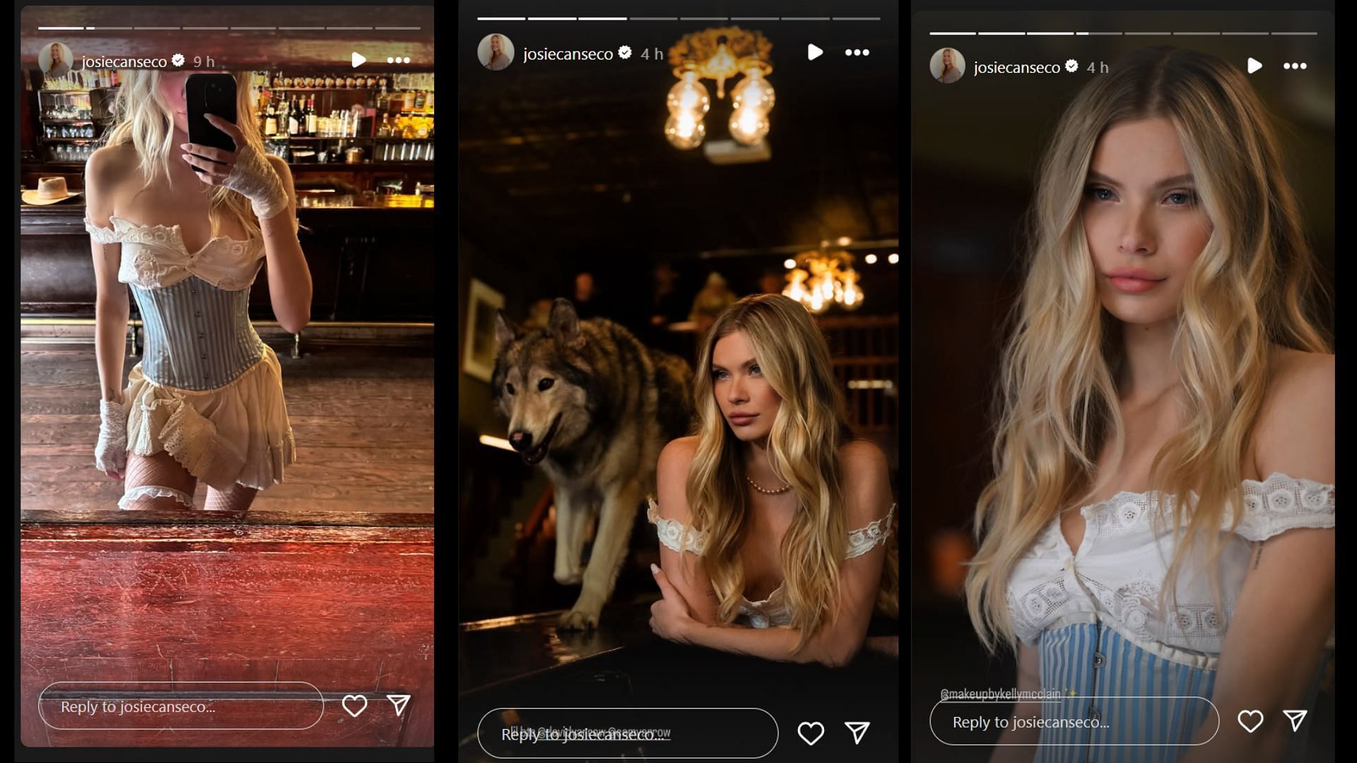 Some of the photos also feature a dog alongside her, with an indoor background that includes warm chandeliers in a vintage bar setting. Josie Canseco ended the series by sharing an outdoor clip from her photoshoot.