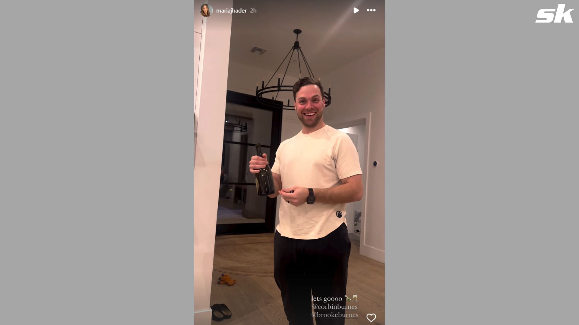 Josh Hader's wife, Maria, captured an ecstatic Corbin Burnes popping a bottle of champagne