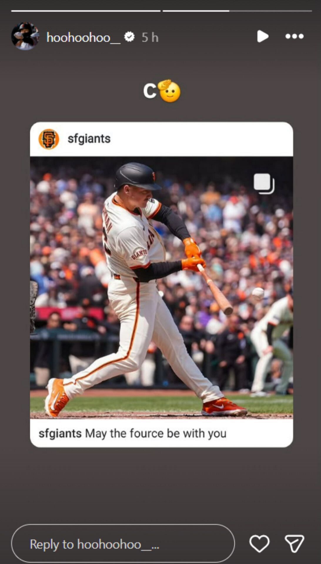 "C," Lee wrote in his Instagram story with a salute emoji, resharing the Giants' post for the infielder.