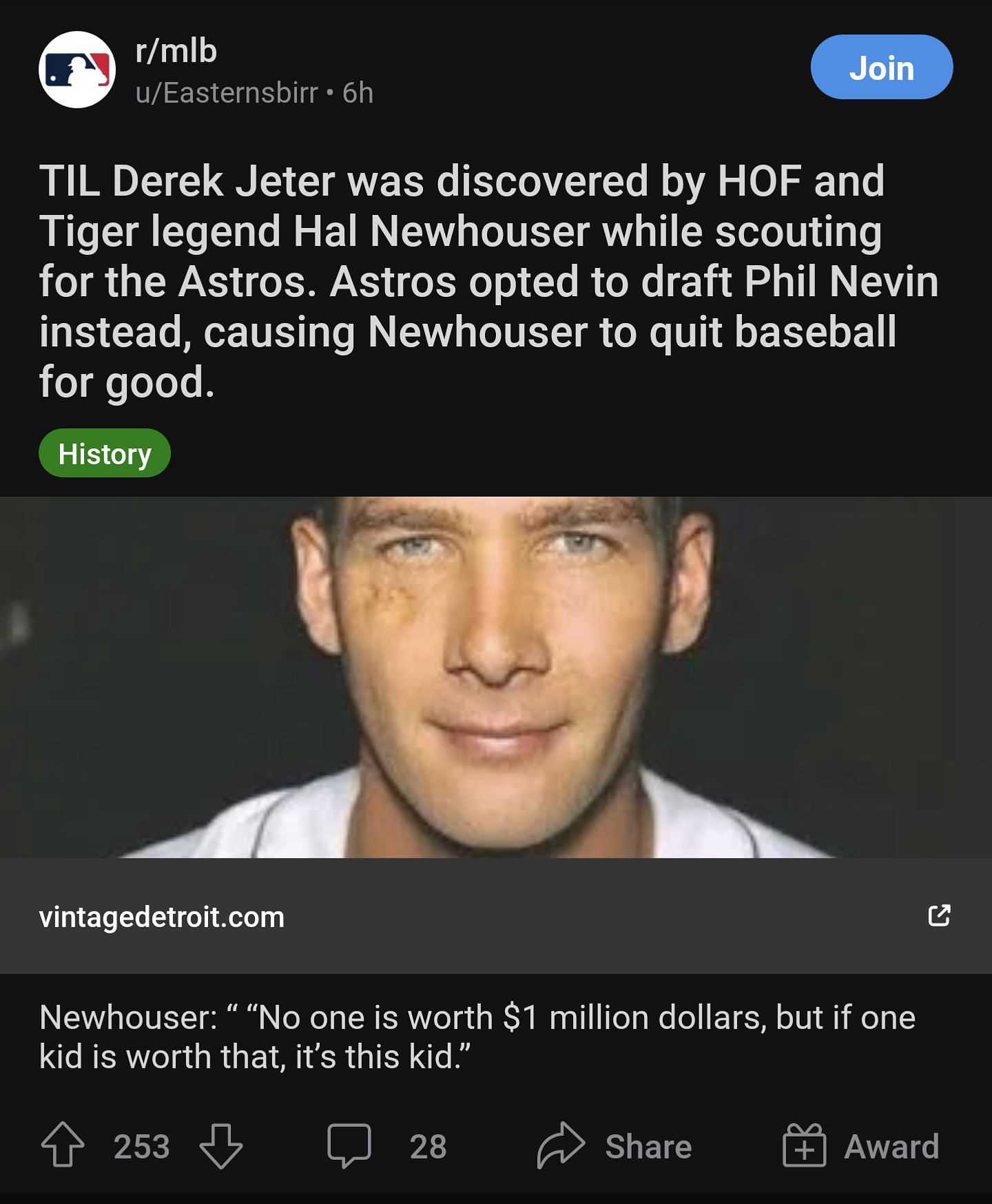 MLB fans can't believe the Astros passed up on Derek Jeter. They stand with Hal Newhouser's decision to quit the day after the draft.