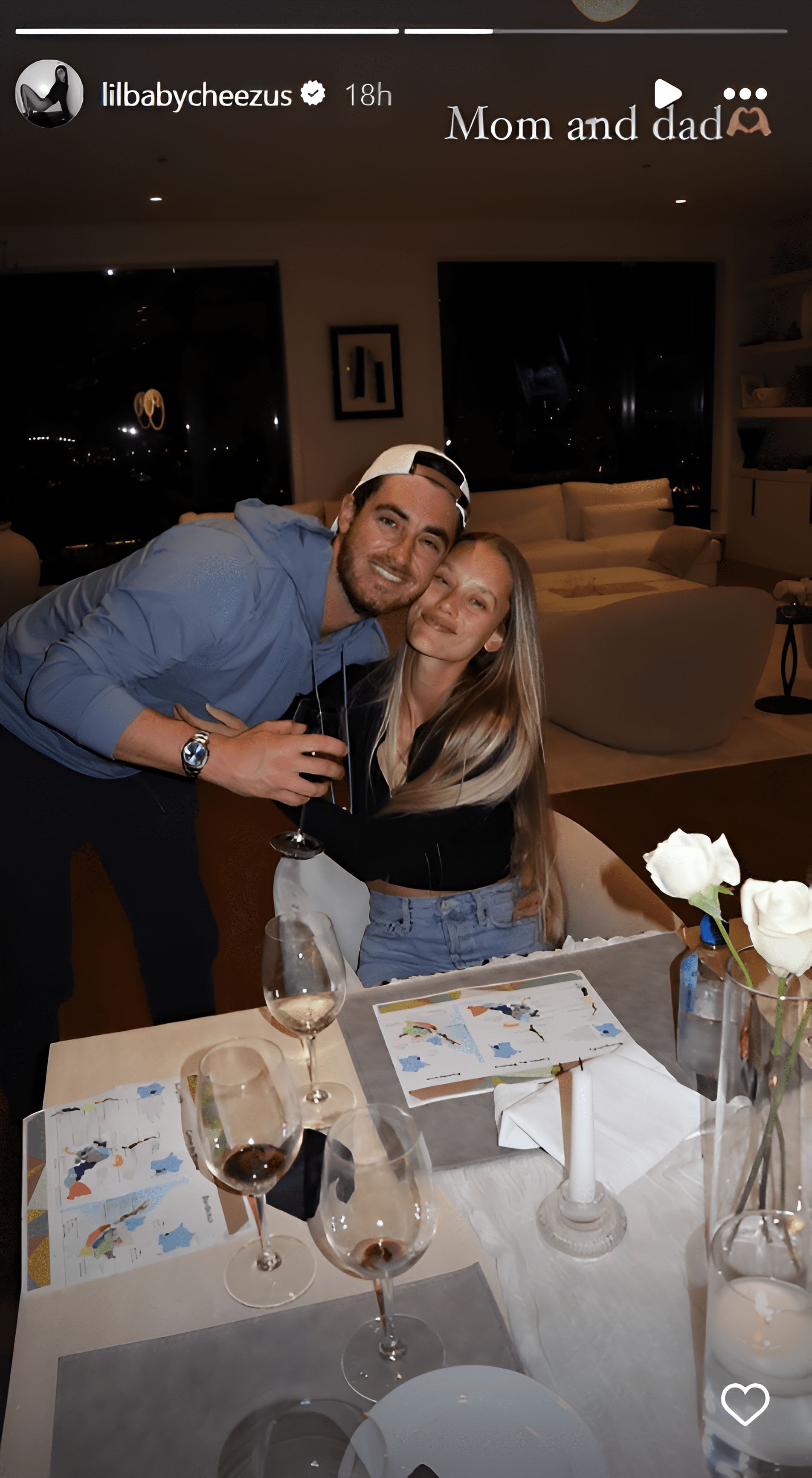 The picture on Chase’s Instagram Story featured a beautifully lit dinner table setting. Four glasses of wine sparkled in the soft light, with Cody Bellinger holding one glass. But the true stars of the photo were the white rose and two small cards placed on the table — a romantic touch that melted hearts.