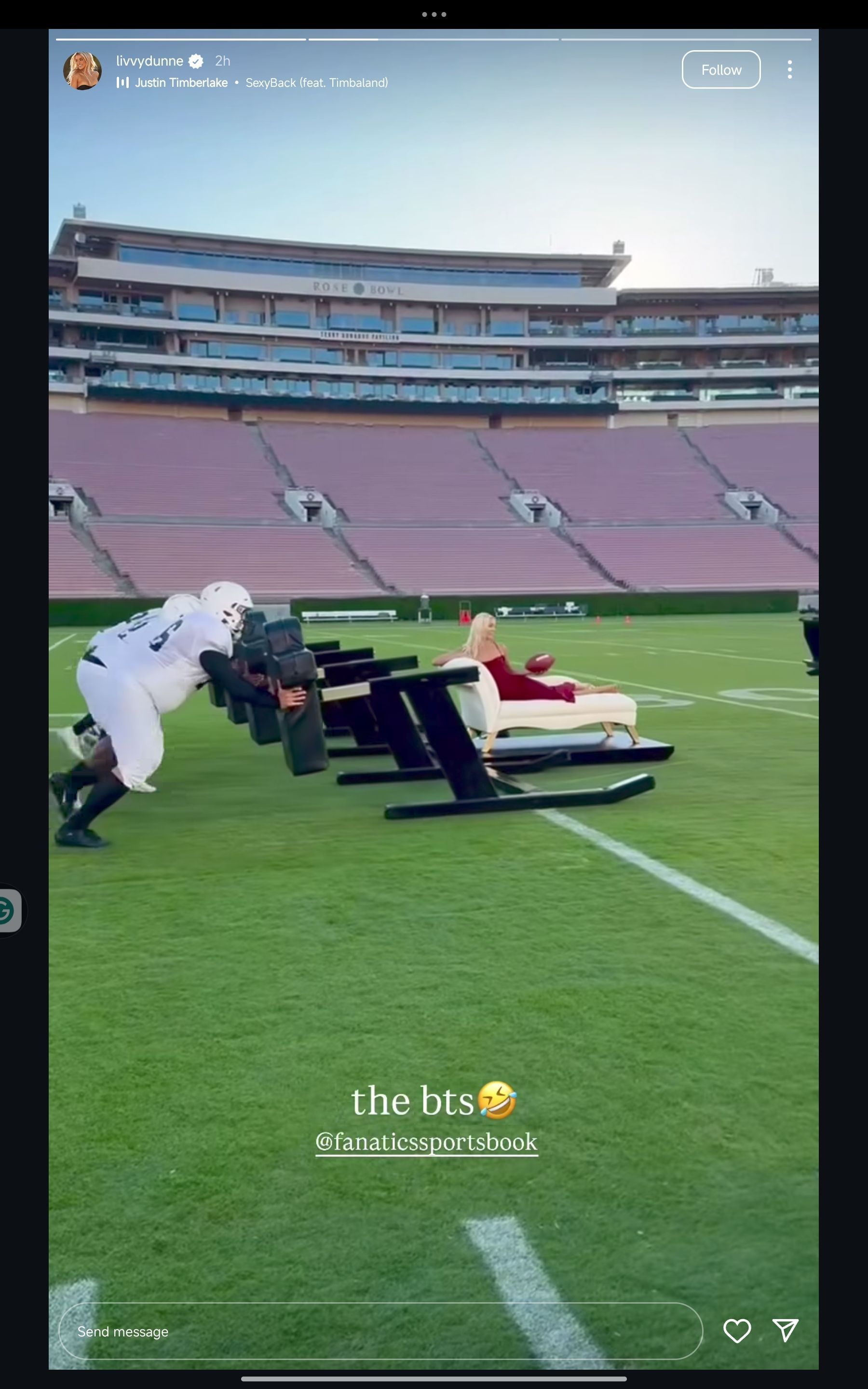 In the latest video for the betting platform, the former LSU star was seen being pushed on a sled on a football field, while explaining the new offers for bettors. She shared the advertisement on her Instagram story, along with the behind-the-scenes clip.