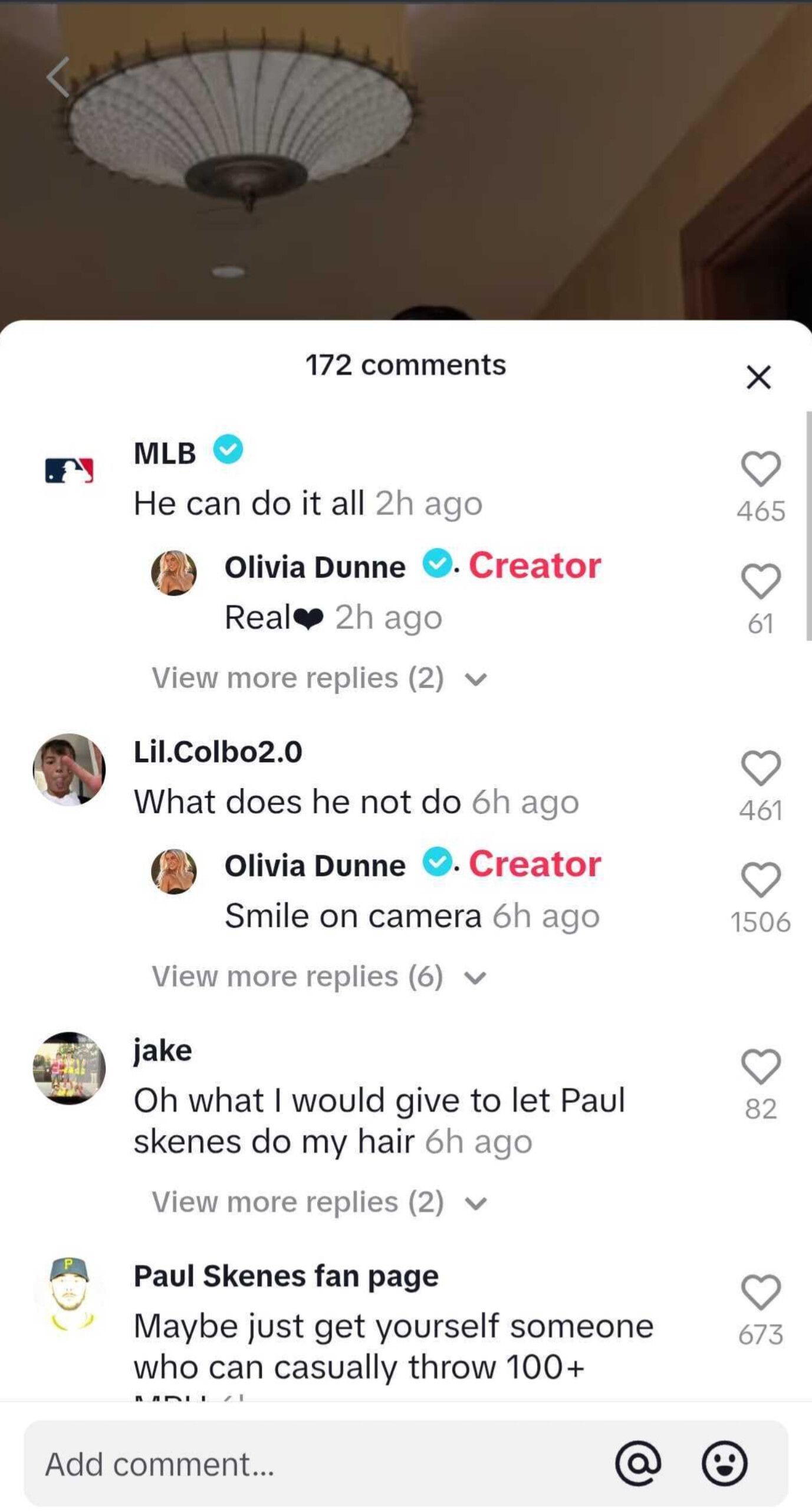 In a clip posted by Dunne on TikTok, Skenes can be seen helping her with her hair.