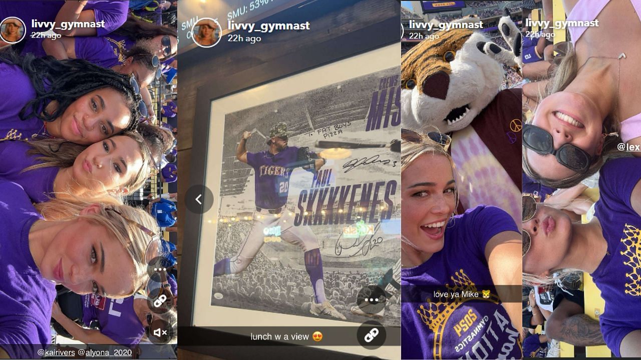 She also added snaps from the game. In one of them, she was with her friend and LSU Gymnastics member Lexi Zeiss. She also clicked a selfie with Alyona Shchennikova and Kai Rivers from the game.