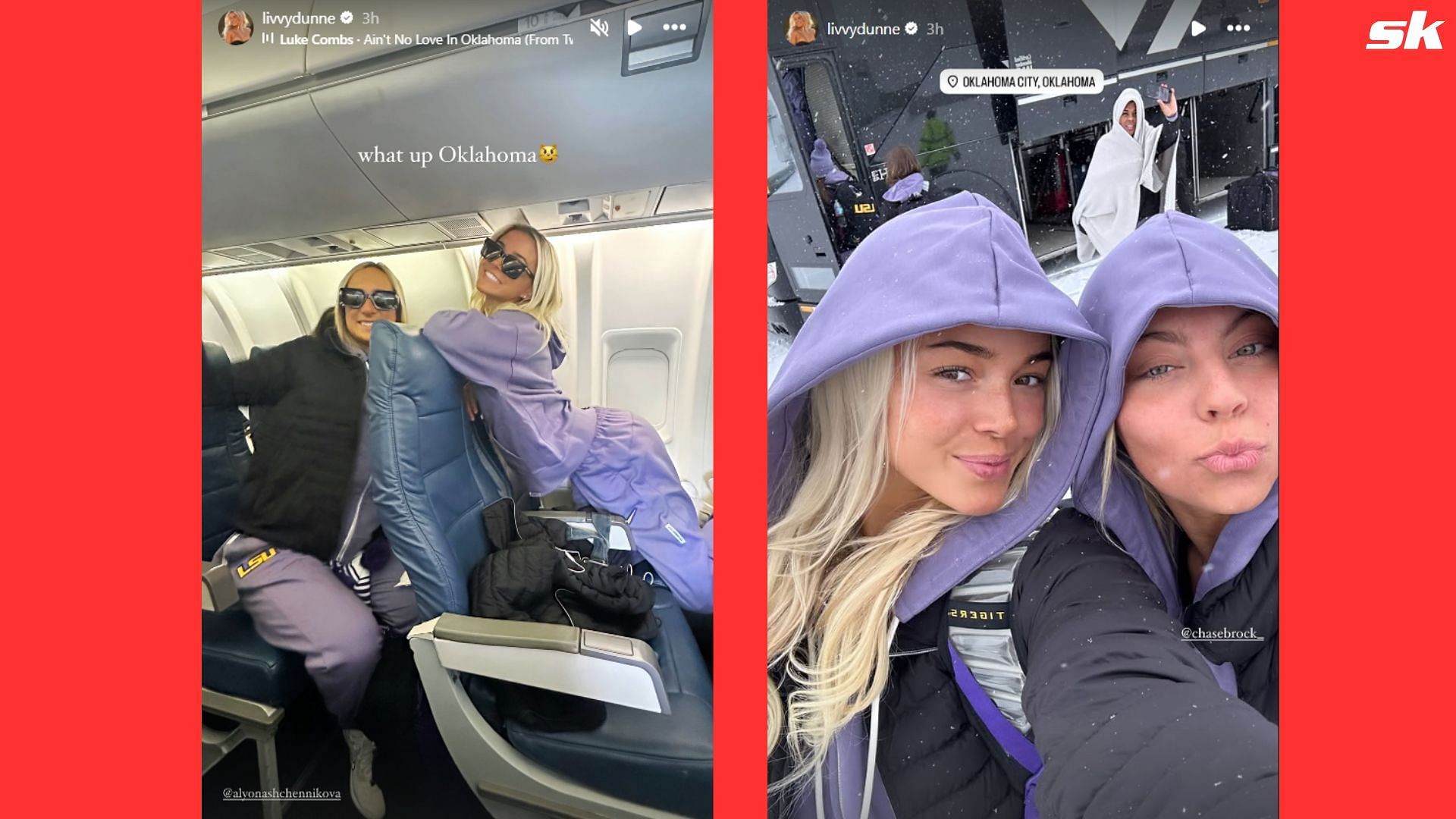 Paul Skenes' girlfriend Olivia Dunne shared images with LSU teammates on reaching Oklahoma City