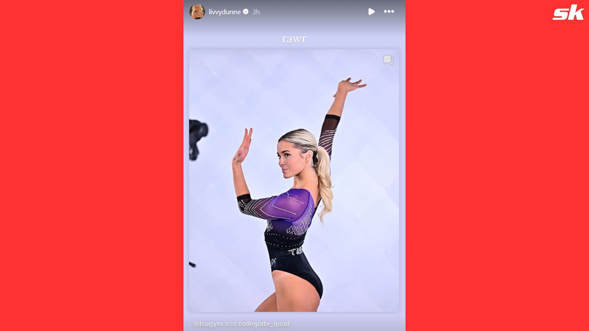 They kick off the event on Jan. 11 and will be taking on the No. 6 California Golden Bears, No. 1 Oklahoma Sooners and No. 4 Utah Utes at Paycom Center in Oklahoma City. Ahead of the collegiate quad, the LSU gymnasts had a photoshoot organized by ESPN and Dunne dropped a one-word comment while sharing her image from the photoshoot on social media:
