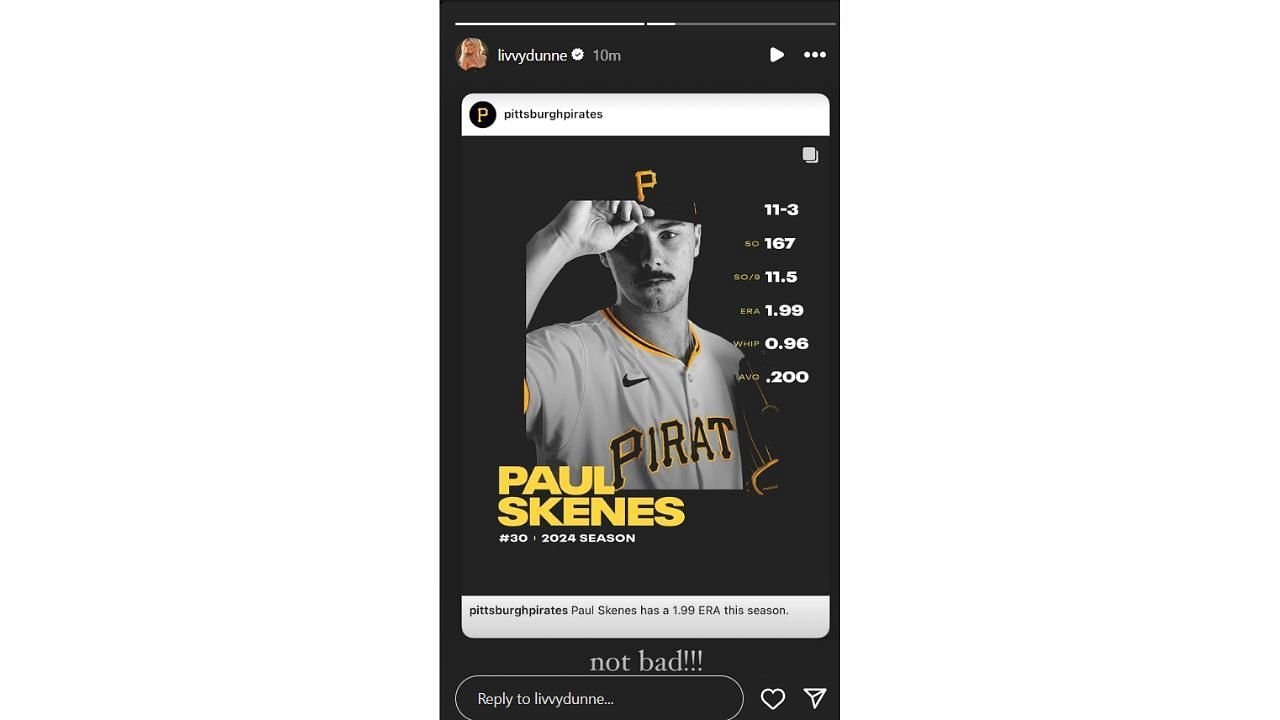 Olivia Dunne's boyfriend, Pittsburgh Pirates rookie Paul Skenes, may have pitched the final game of his stellar rookie season on Sunday against the Cincinnati Reds.