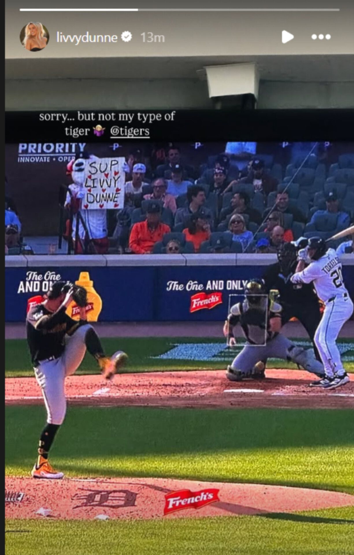Paul Skenes started for the Pittsburgh Pirates against the Detroit Tigers on Thursday. As Skenes got into his rhythm at the mound, his girlfriend Olivia Dunne was mentioned in a poster made by Tigers mascot Paws behind the home plate.