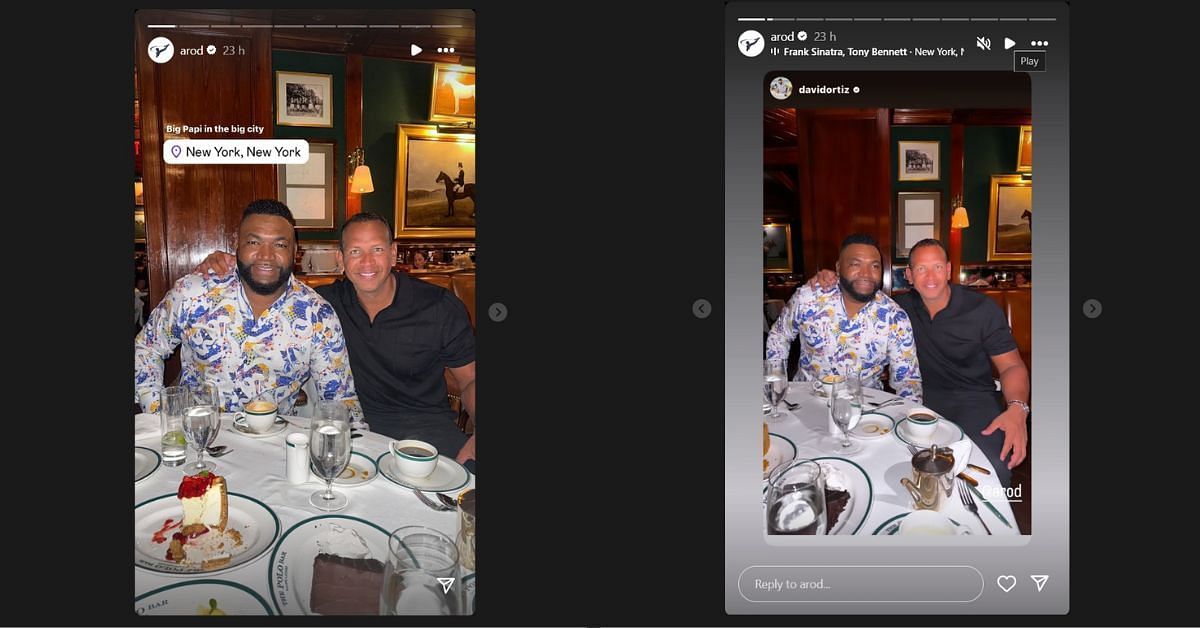 Rodriguez was known for his clashes on the field, especially with former Boston Red Sox designated hitter David Ortiz. Recently, the former AL rivals had a chance to reunite and catch up. Alex Rodriguez posted a story on his Instagram account featuring him and David Ortiz at an NYC restaurant, enjoying coffee, cake and other desserts.